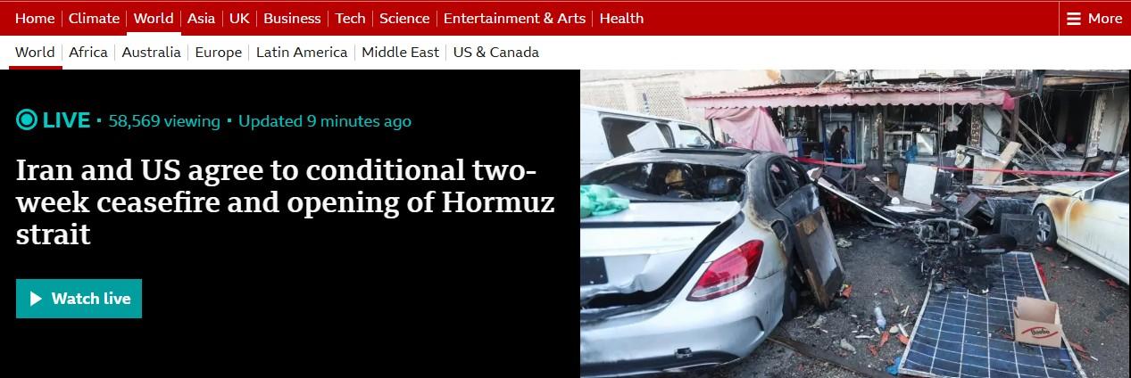 Iran and US agree to conditional two-week ceasefire and opening of Hormuz strait, BBC reports