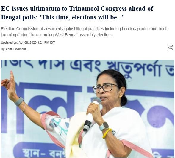 Hindustan Times: EC issues ultimatum to Trinamool Congress ahead of Bengal polls