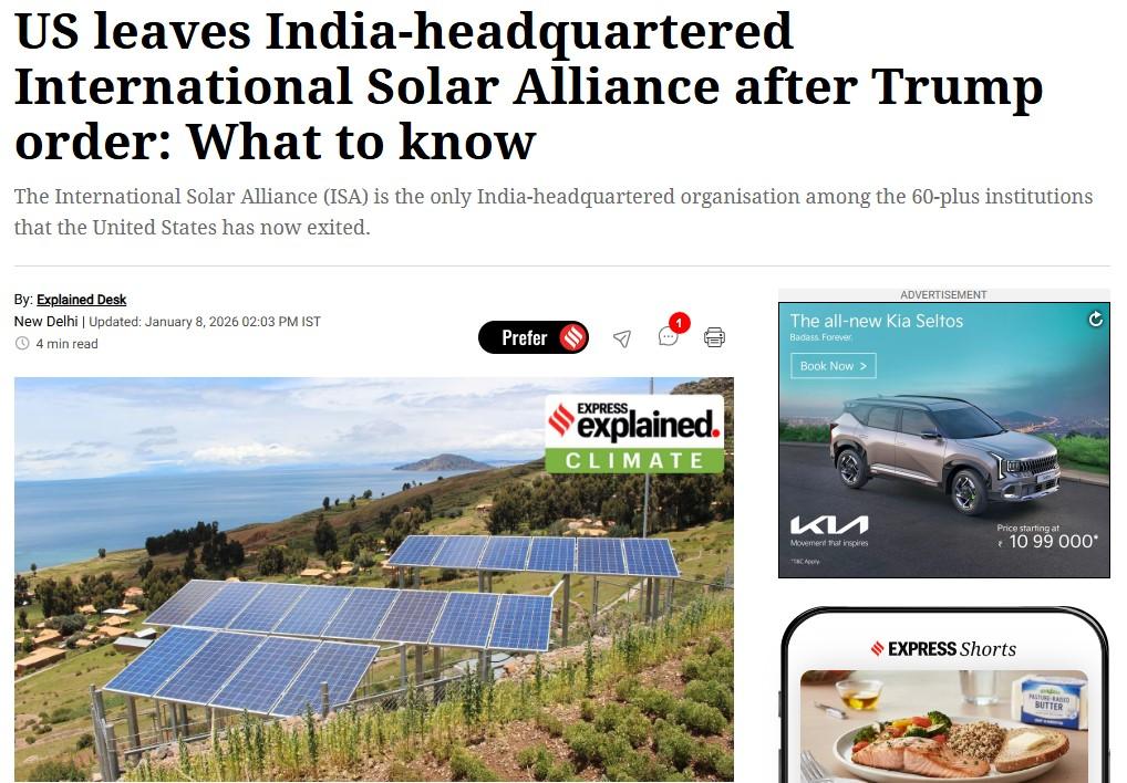 US leaves India-headquartered International Solar Alliance after Trump order: Indian Express