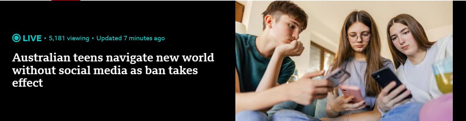 BBC: Australian teens navigate new world without social media as ban takes effect