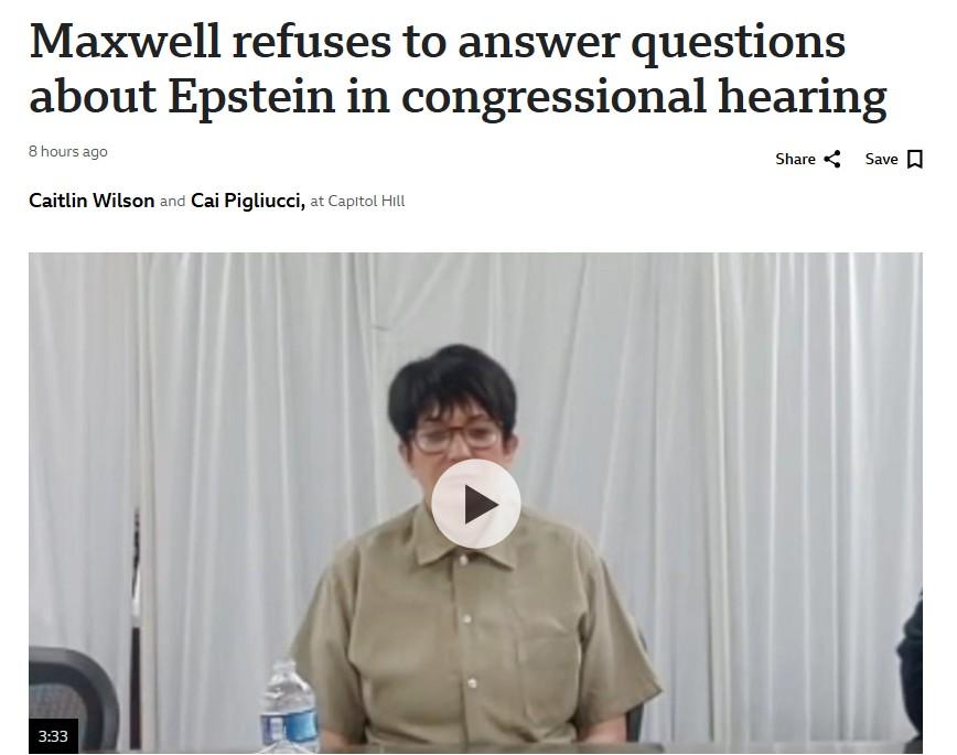 BBC reports, Maxwell refuses to answer questions about Epstein in congressional hearing