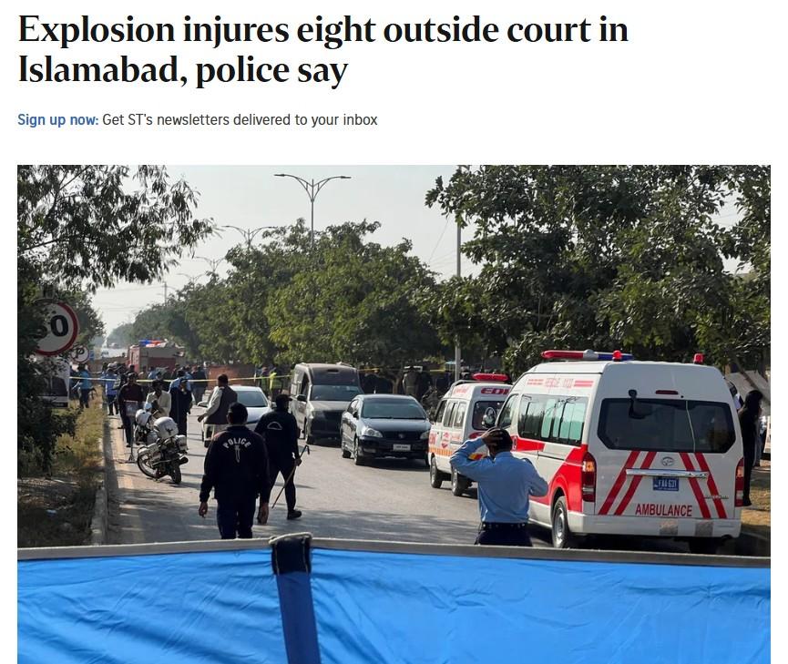 Explosion injures eight outside court in Islamabad, police say: The Straits Times