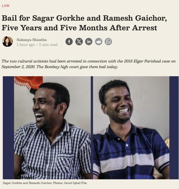 Bail for Sagar Gorkhe and Ramesh Gaichor, The Wire