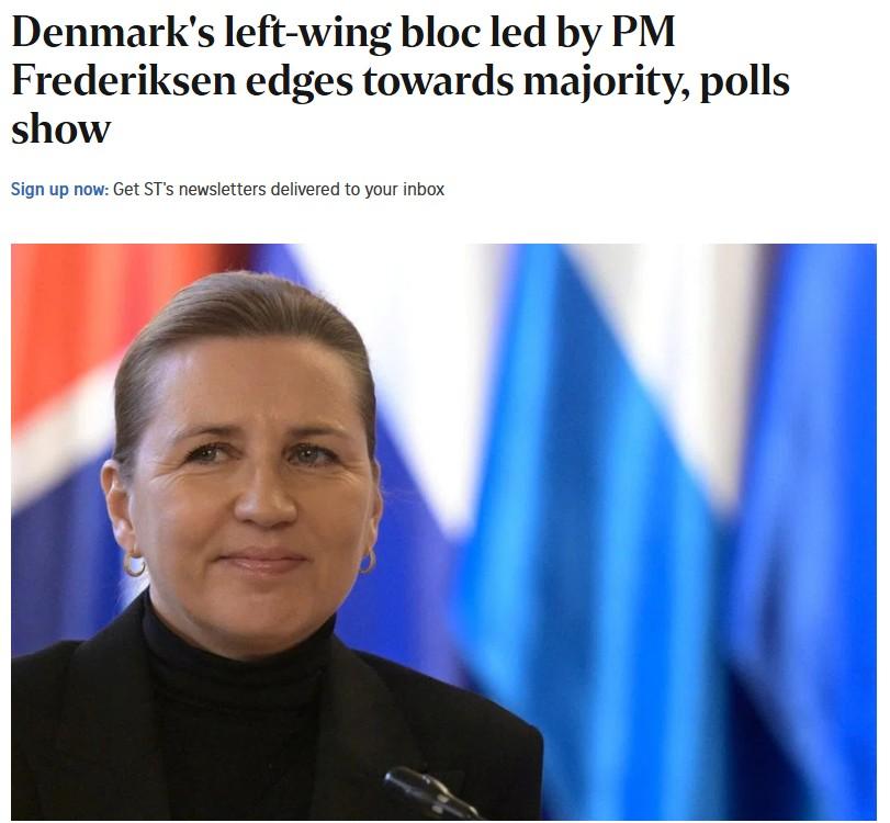 The Straits Times: Denmark's left-wing bloc led by PM Frederiksen edges towards majority