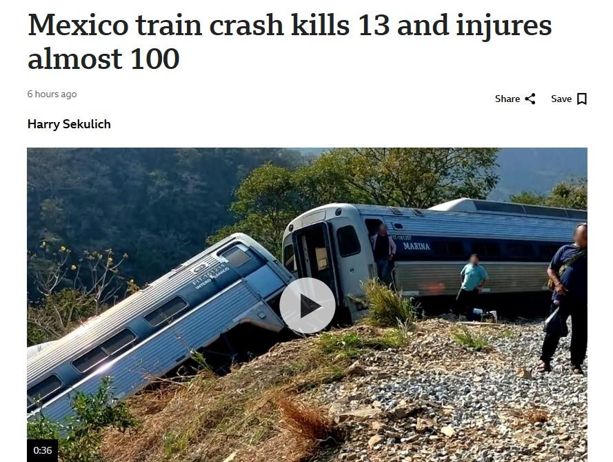 Mexico train crash kills 13 and injures almost 100, BBC reports