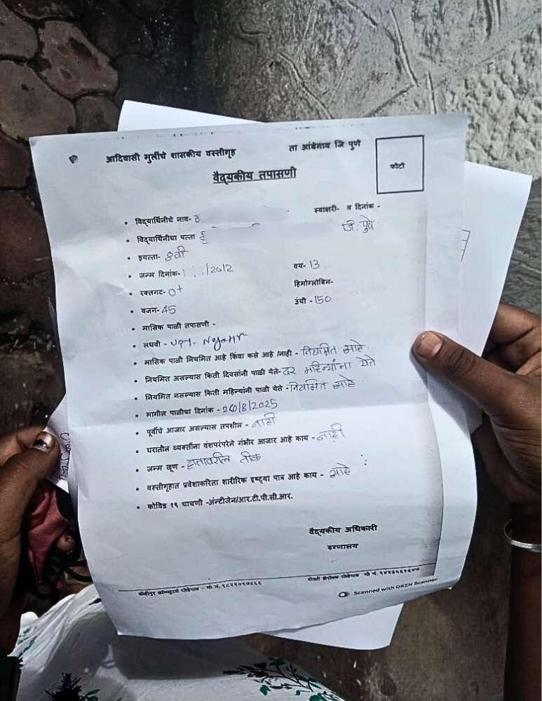 संबंधित तालुका अधिकारी यांनी यावेळी मुली आमच्याकडं तपासणीसाठी येतात, जर आम्ही युपीटी तपासणी केली नाही तर मुलींना वसतिगृहात प्रवेश दिला जात नसल्याचं सांगितलं होतं.
